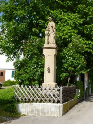 Hl. Anna-Säule, Sandsteinfigur auf hohem Sockel, bezeichnet 1869