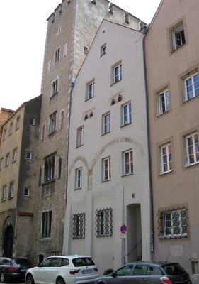 Ehemals Gasthof Goldener Greif, viergeschossiger und giebelständiger Satteldachbau, im Kern gotisch, 1958 als erstes Haus der Altstadt teilerneuert und saniert, unter baukünstlerischer Leitung von Hans Döllgast