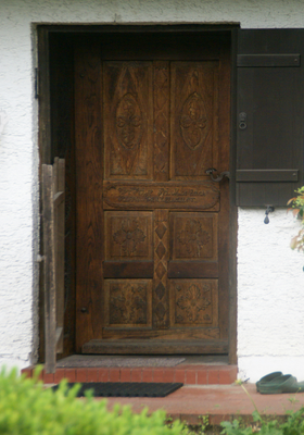 Geschnitzte Haustür, building in Töging am Inn, Upper Bavaria, Germany