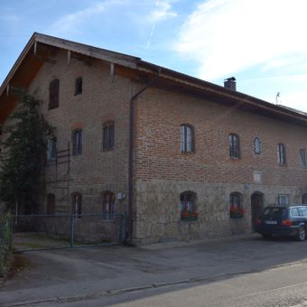 Elisabethstraße 41 Tüßling, Nördlich Wohnstallhaus, Tuffquader- und Ziegelbau, unverputzt, mit Flachsatteldach, bezeichnet mit dem Jahr 1863;