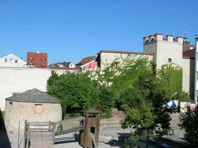 Zwei Wehrerker, zwei Wehrerker (Barbakane) der Stadtbefestigung, halbzylindrig mit Kegeldach, spätmittelalterlich; Wehrturm, rechteckig, mit Zinnen, spätmittelalterlich (siehe Stadtbefestigung).Siehe unter #D-1-76-123-1
