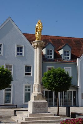 Mariensäule, steinsäule auf Sockel mit vergoldeter Marienstatue, 1871