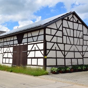 Fachwerkstadel, Fachwerkbau mit hohem Kniestock und Satteldach, traufseitig erschlossen, erste Hälfte 19. Jahrhundert
