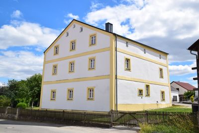 Pfarrhaus, zweigeschossiger Massivbau mit hohem Kniestock und Flachsatteldach, Putzgliederung, um 1680, mit Umbauten aus dem 19. und 20. Jahrhundert;