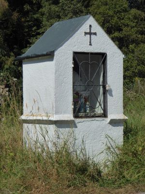 Bildstock, kleines Satteldachhäuschen mit Putzgliederung, 20. Jahrhundert