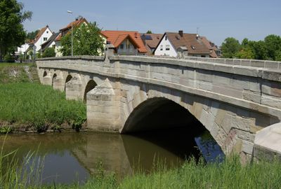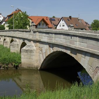 Aurachbrücke, von 1788, nach einem Hochwasserschaden 1941 zum Teil wiederhergestellt