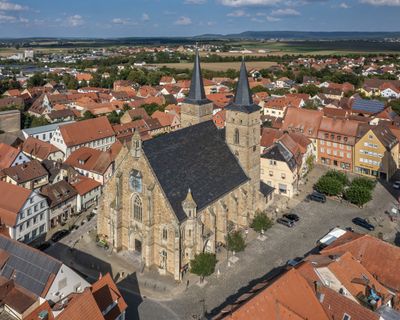 Maria Rosenkranzkönigin es una iglesia católica en Gerolzhofen que presenta elementos arquitectónicos tradicionales bávaros y detalles de construcción regional. El interior muestra obras de arte religiosas cuidadosamente elaboradas, un altar y características decorativas que definen su apariencia.