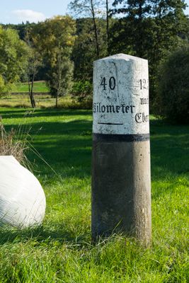 Kilometerstein Todtenweisach, kilometre stone in the Bavarian market town of Maroldsweisach
