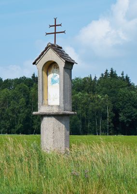 Bildstock, sogenannte Hohe Marter, polygonaler Pfeiler mit Laterne und Satteldach, frühes 20. Jahrhundert