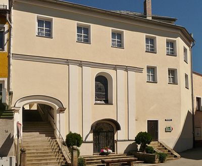 Gedeckte Steintreppe, gedeckte Steintreppe an der Westseite des Kirchberges, Korbbogeneingänge, eingebaut in die Anlage der ehem. Friedhofsbefestigung, 16. Jahrhundert, mit zahlreichen Grabdenkmälern des 17.-19. Jahrhunderts
