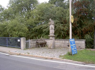 Nepomuk Pfrentsch, heiliger Johannes von Nepomuk, Granit, auf geschweiftem Volutenpostament, 18. Jahrhundert