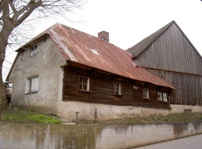 Hakenhof in Eslarn, bauernhaus, eingeschossiger Schopfwalmdachbau, hofseitig als Greddach ausgebildet, Blockbau, zum Teil verschindelt, 18./Anfang 19. Jahrhundert