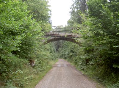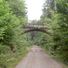 Wegbrücke im Kühlbühl, eisenbahnbrücke der Lokalbahn Neustadt-Vohenstrauß-Waidhaus-Eslarn mit flachem Parabelbogen, aus Granitquadermauerwerk mit rustizierter Einfassung, 1900; im Walddistrikt Kühbühl