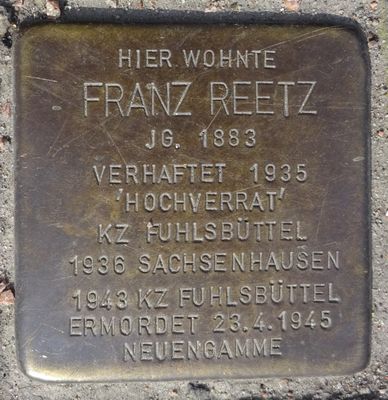 Stolperstein en memoria de Franz Reetz, Stolperstein in Hamburg-Rothenburgsort