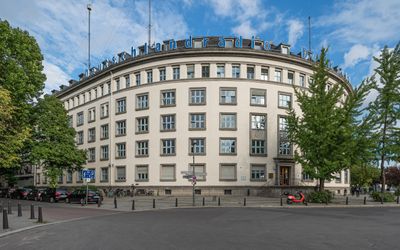 Construido entre 1938 y 1941 para Bayerische Stickstoffwerke AG, la estructura se convirtió en la sede de la emisora RIAS en el sector americano tras la Segunda Guerra Mundial.