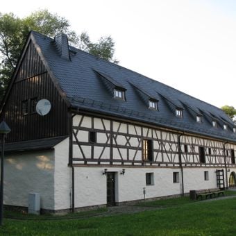 Rittergut Weischlitz, Beide Gebäude mit Fachwerk-Obergeschoss, reiches fränkisches Fachwerk, von ortsgeschichtlicher und besonderer bauhistorischer Bedeutung. * Ehemaliger Stall: Zwei Geschosse, EG massiv mit Stalleinbau, Obergeschoss reiches fränkisches Fachwerk (zum