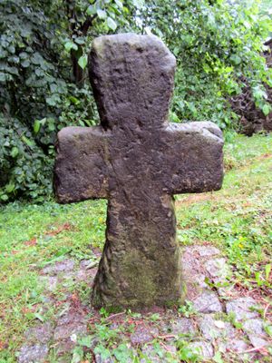 Steinkreuz Kirchberg 4, anlässlich des Todes eines Menschen durch Totschlag oder Unfall errichtetes kreuzförmiges Erinnerungsmal, so genanntes Mord- und Sühnekreuz, ortsgeschichtlich bedeutsam, besonderer Wert auch wegen des hohen Alters, baugeschichtlich von Bedeutung