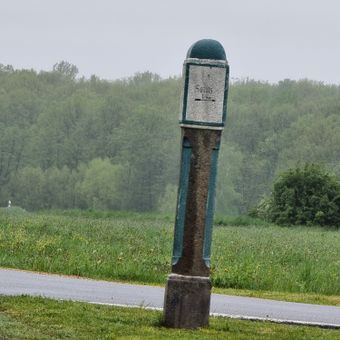 Wegestein, Verkehrsgeschichtlich von Bedeutung, monolithische Granitsäule auf quadratischem Grundriss, Sockel bezeichnet mit 1845, darüber Schaft mit abgefasten Kanten, vorkragendem Kopfteil und abgerundetem oberen Abschluss, Seitenflächen des Kopfteils mit