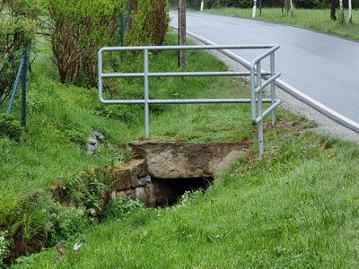 Gedans Steinbruch mit Bruchsteinmauer Schönberger Paßstraße (an der Gemeindegrenze von Schönberg, am Rande des Czornebohs)