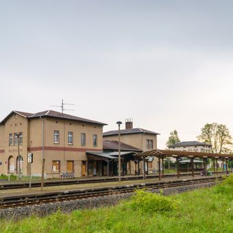 Estación Großbothen, estaión del ferrocarril, cruce de las líneas BC/6386 Bordsorf–Coswig, GW/6629 Glauchau–Wurzen y BGe/6916 Borna–Großbothen en Großbothen, ciudad Grimma, Sajonia, Alemania