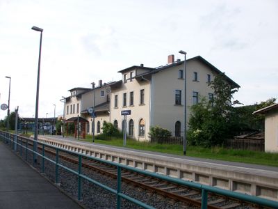 Edificio de servicio de la estación Olbernhau, Dienst- und Nebengebäude; symmetrisch angelegter Putzbau, weitgehend originale Fassadengliederung und Innenausstattung, ortsgeschichtlich von Bedeutung