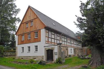 Wohnstallhaus, Seitengebäude, Scheune, Toreinfahrt und Einfriedung eines Dreiseithofes Kipsenstraße 6, house in Kreischa, Germany