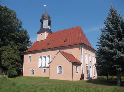 Kirche, Kirchhof samt hoher Einfriedungsmauer, Denkmal für die Gefallenen des Ersten Weltkrieges und Gedenktafel 1870/71 an Ostmauer des Turms Mittlere Dorfstraße -