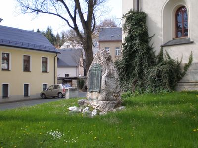 Kriegerdenkmal Kirchplatz, Ortsgeschichtlich von Bedeutung. Stein mit Bronzetafel