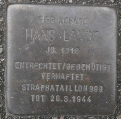 Stolperstein en memoria de Hans Lange, Stolperstein in Hamburg-Neustadt