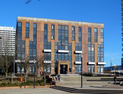 Rathaus Marzahn, Edificio gubernamental municipal en Marzahn-Hellersdorf, Alemania.