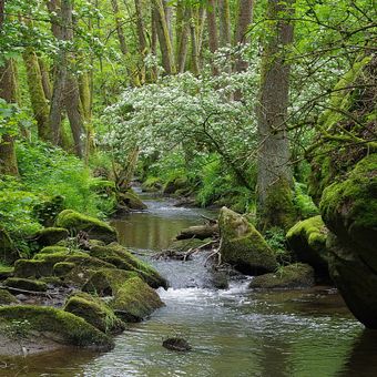 Wolfslohklamm bei Sargmühle, Prallhang im Landkreis Neustadt a. d. Waldnaab in Bayern