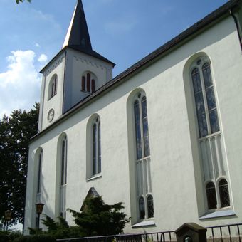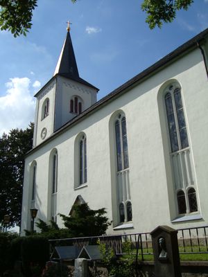 Kirche mit Ausstattung, Kirchhof, Einfriedungsmauer, östliches älteres Leichenhäuschen und ein Grabmal Am Kirchberg -, church building in Dorfchemnitz, Germany