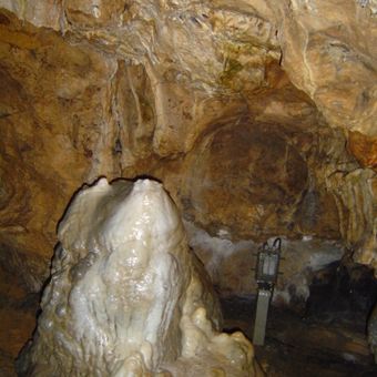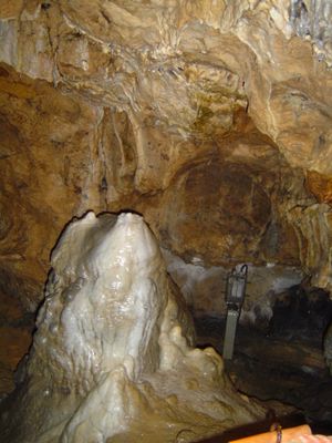 Sontheimer Höhle mit Rotbuche am Höhleneingang, Natural monument in Heroldstatt, Baden-Württemberg, Germany