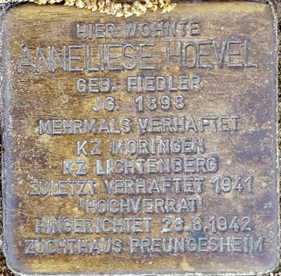 Stolperstein en memoria de Anneliese Hoevel geb. Fiedler
