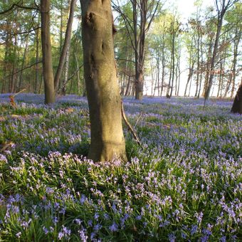 La reserva ocupa 8.8 hectáreas entre Doveren y Baal, con grandes extensiones de campanillas atlánticas que cubren el suelo forestal durante primavera.