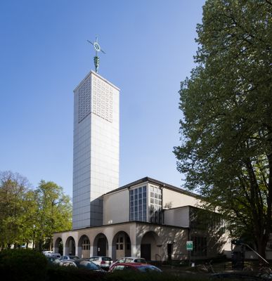 Los arquitectos Wilhelm Riphahn y Caspar Maria Grod diseñaron la iglesia en 1930, siguiendo los principios de la Nueva Arquitectura con énfasis en funciones litúrgicas.