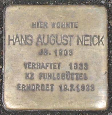 Stolperstein en memoria de Hans August Neick, Stolperstein in Hamburg-St. Pauli