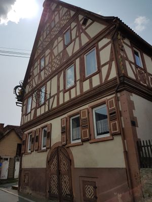 Gasthof "Zum Engel", Gasthof "Zum Engel" (§ 28) mit Scheunengebäude und Kegelbahn (Sachgesamtheit). Fachwerkhaus, von 1612, Zum Oberen Tor 4 (Flst.Nr. 0-124–125)