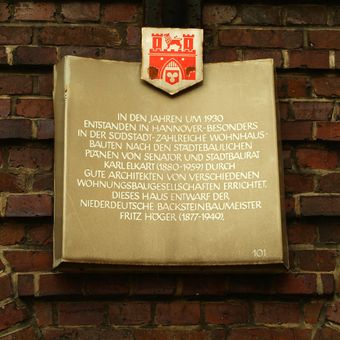 Stadttafel Backsteinbau von Fritz Höger, Memorial plaque in Hanover, Germany