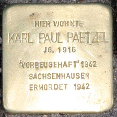 Stolperstein en memoria de Karl Paul Paetzel, Stolperstein in Wuppertal, Deutschland