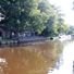 El edificio de ladrillo de dos plantas alberga un restaurante tradicional con terraza que ofrece vistas directas al río Hamme.