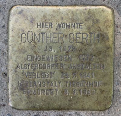 Stolperstein en memoria de Günther Gerth, Stolperstein in Hamburg-Eimsbüttel