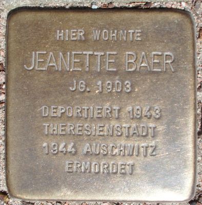 Stolperstein en memoria de Jeanette Baer, Stolperstein in Hamburg-Harvestehude