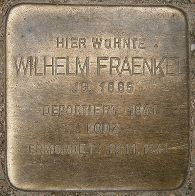 Stolperstein en memoria de Wilhelm Fraenkel, Stolperstein in Hamburg-Harvestehude