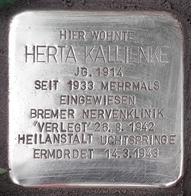 Stolperstein en memoria de Herta Kallienke, Stolperstein in Bremen-Neustadt