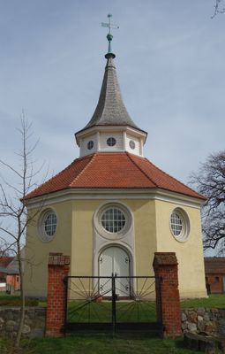 La Dorfkirche presenta muros de mampostería, elementos arquitectónicos góticos y una planta rectangular de 17 metros de largo por 9,5 metros de ancho.
