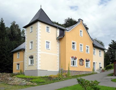 Einzeldenkmale der Sachgesamtheit Rittergut Dörnthal: ehemaliges Herrenhaus, heute Altenheim, und Einfriedungsmauern südlich und südwestlich des Herrenhauses (siehe auch Sachgesamtheitsliste - Obj. 09302215, Am Feierabendheim 2-7) Am Feierabendhei