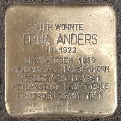 Stolperstein en memoria de Erna Anders, Stolperstein in Hamburg-Eppendorf