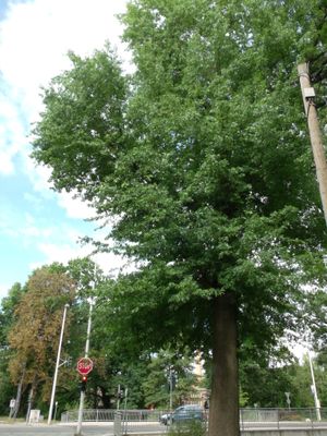 Naturdenkmal [[Eichen|Eiche]]-[[Stieleiche]] (''Quercus robur'') Franz‑Mehring‑Straße, Nähe Einfahrt zur Straße An der Wachsbleiche in Cottbus-Mitte