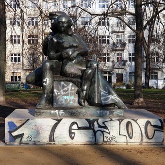 Bettina and Achim von Arnim, sculptur by Michael Klein at the Arnimplatz in Berlin, Germany